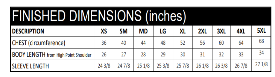 XS-5XL (upcharges apply for 2XL-5XL)